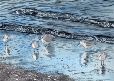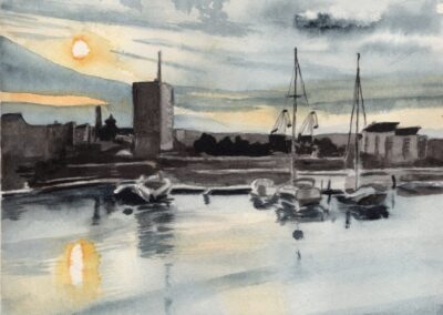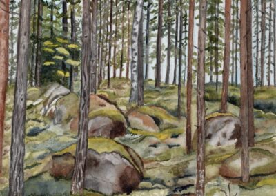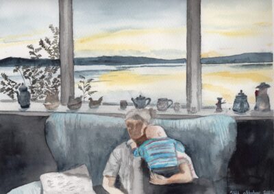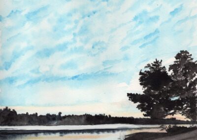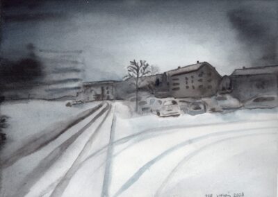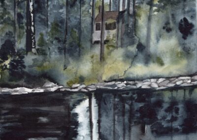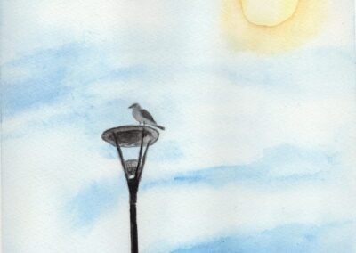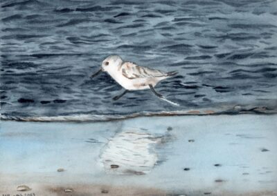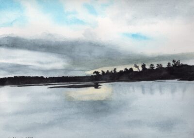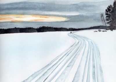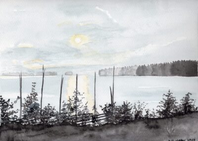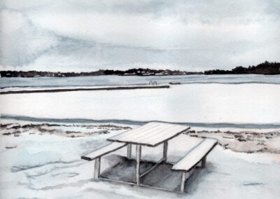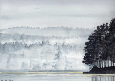 Akvareller 2023 Vinter i Gustavsberg Barnbadet Saltarö Morgonhimmel i augusti Picasso Vid Eknäs brygga Svan Skidspår på Rogsjön Från Venedig Gammelboda-udden Fiskebåt i Lønstrup På språng Ej i trafik Hamnen i Övik Strandlöpare i Skagen Mås i Övik Skog på Getnäsudden Dis över Rogsjön Skog i Nacka Dis mot Bjursås Du och jag, Alve